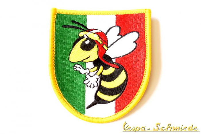 Mit Beschichtung zum Aufbügeln! Länge: 80mm / Breite: 70mm Hersteller: Vespa-Schmiede / Marktstr. 14 / 38640 Goslar / Germany / +491774041164 / henry@vespa-schmiede.de Sicherheitshinweise: Achtung: Nicht für Kinder unter 3 Jahren geeignet.