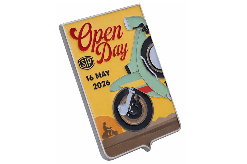 Retro Plakette, die traditionell am Beinschild befestigt wird (oder natürlich auch überall anders, wenn gewünscht).