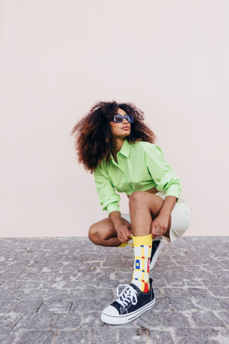 Socken im Design "Broadway Boogie Woogie" von Piet Mondrian.
