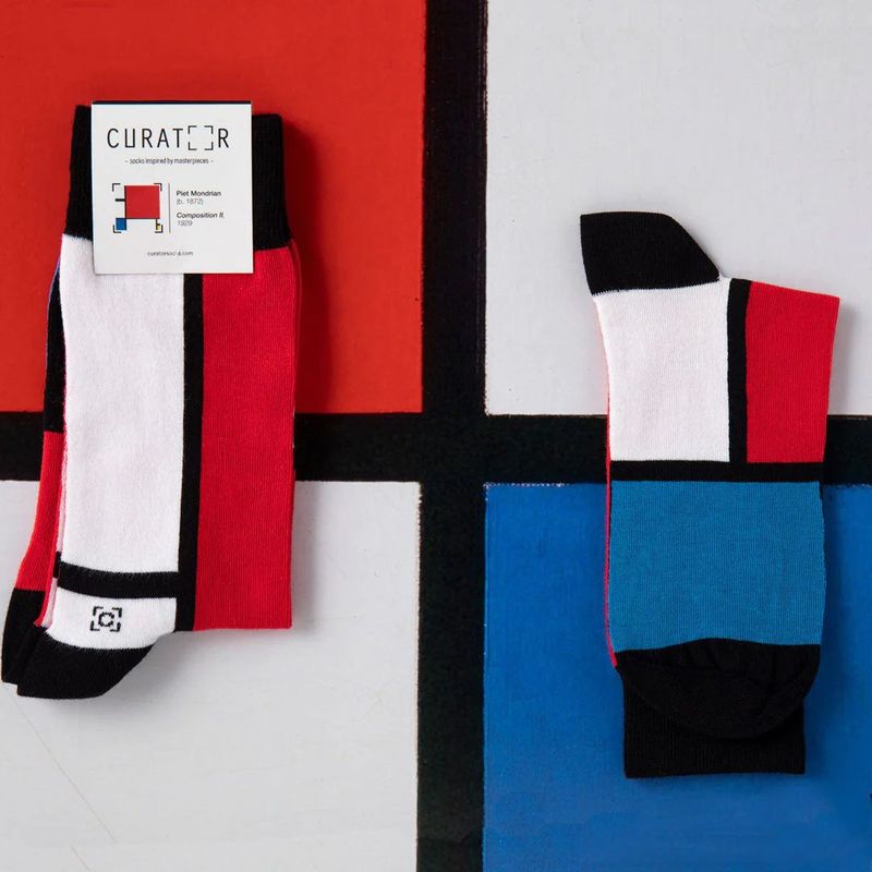 Socken im Design "Komposition II" von Piet Mondrian.