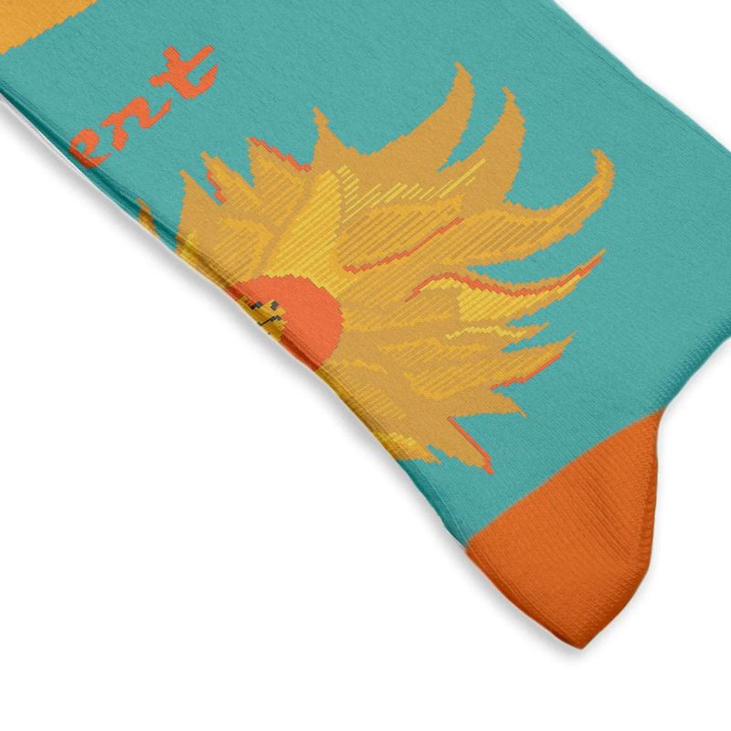 Socken im Design "Zwölf Sonnenblumen in einer Vase" von Vincent van Gogh.