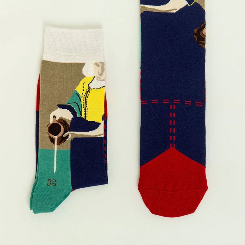 Socken im Design "Dienstmagd mit Milchkrug" von Jan Vermeer.